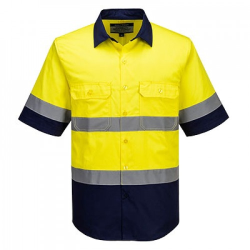 cotton drill with two chest pockets and reflective tape on the body and