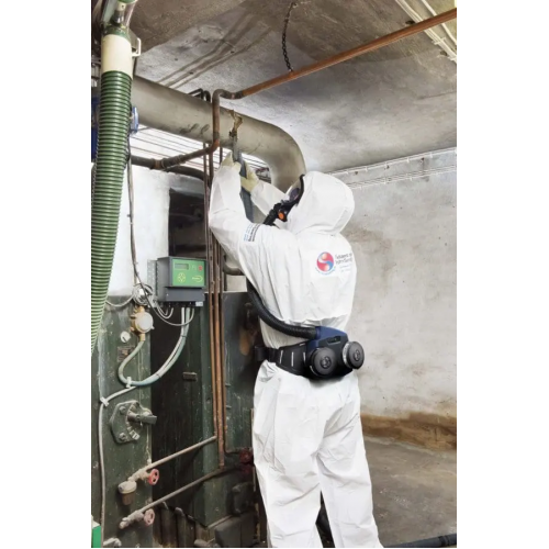 • High-Efficiency Particle Filtration: Equipped with twin P3 R particle filters capable of stopping 99.997% of particles, including silica dust, asbestos fibres, lead dust, and biological hazards.